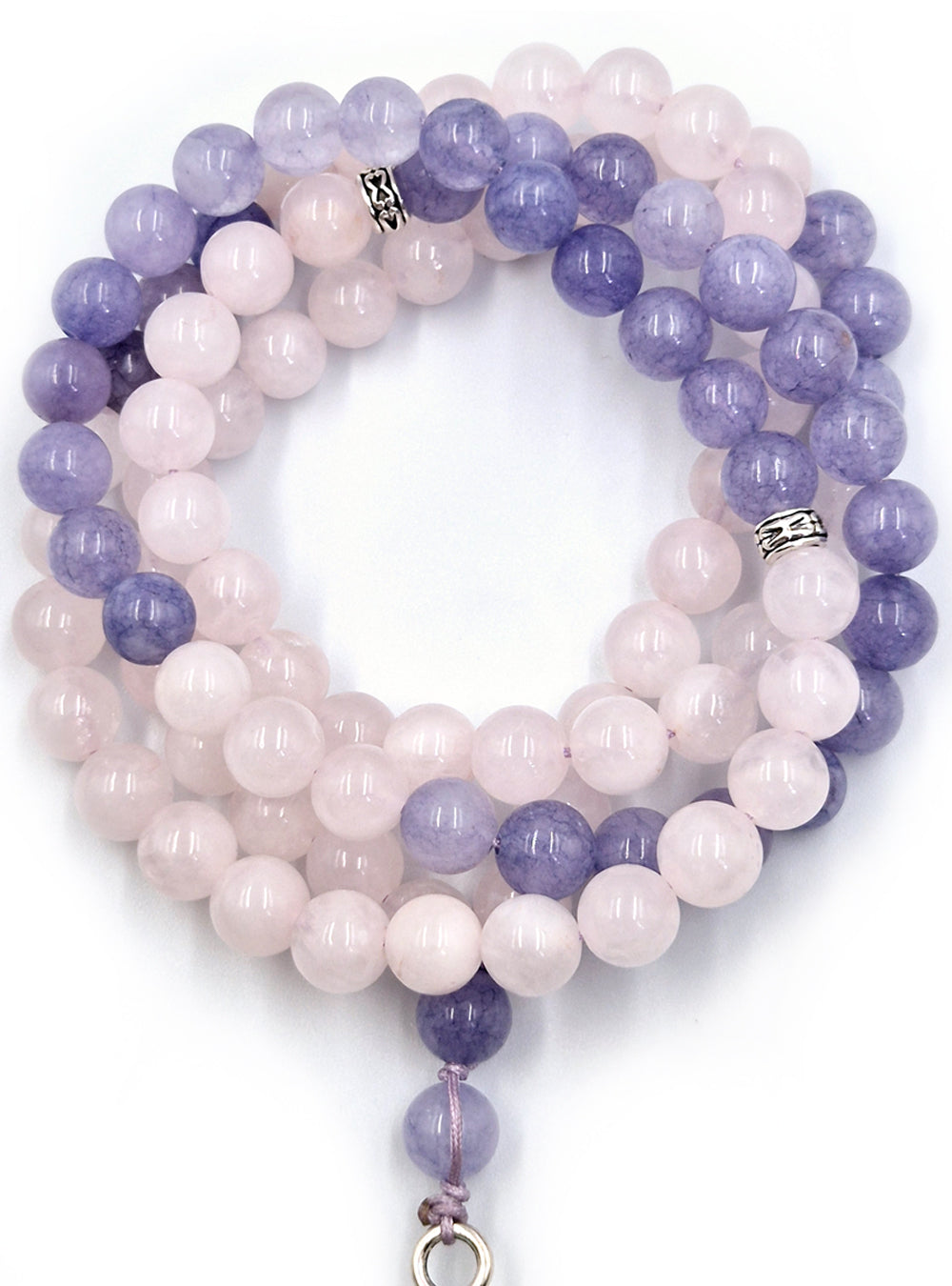 A gentle yet powerful tribute to the heavens, this prayer bead set highlights the soft blush tones of Rose Quartz, complemented by the calming hues of Angelite. Rose Quartz, formed over millennia through crystallized silica, has been cherished in royal courts for its delicate, translucent beauty. Angelite, a rare mineral formed from compressed gypsum deposits, carries the color of serene skies and was once ground into sacred pigments. Together, they create a bead set that reflects tranquility, harmony, and the celestial dance between dusk and dawn.
