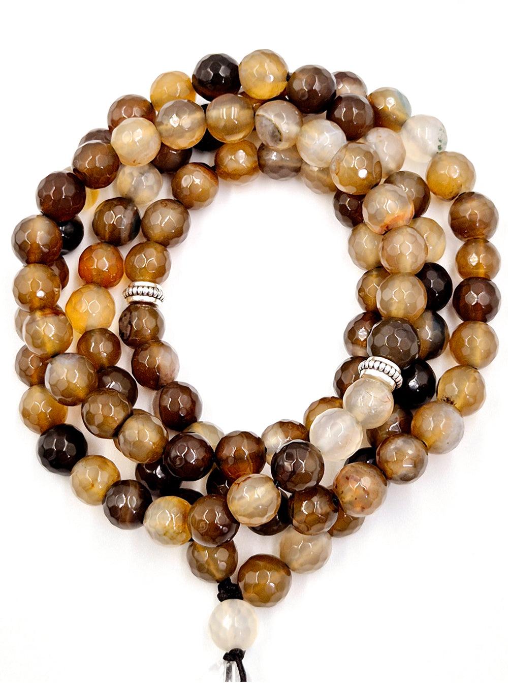 This prayer bead set is a tribute to earth’s quiet elegance and enduring strength. It is crafted from Brown and Beige Agate, reflecting the rich tones of sunlit dunes and ancient rock formations. Brown Agate, shaped over millennia, carries the grounding energy of the land, while Beige Agate, with its soft, golden hues, mirrors the gentle warmth of shifting sands. Each bead is a reminder of nature’s timeless artistry, where resilience and beauty intertwine.