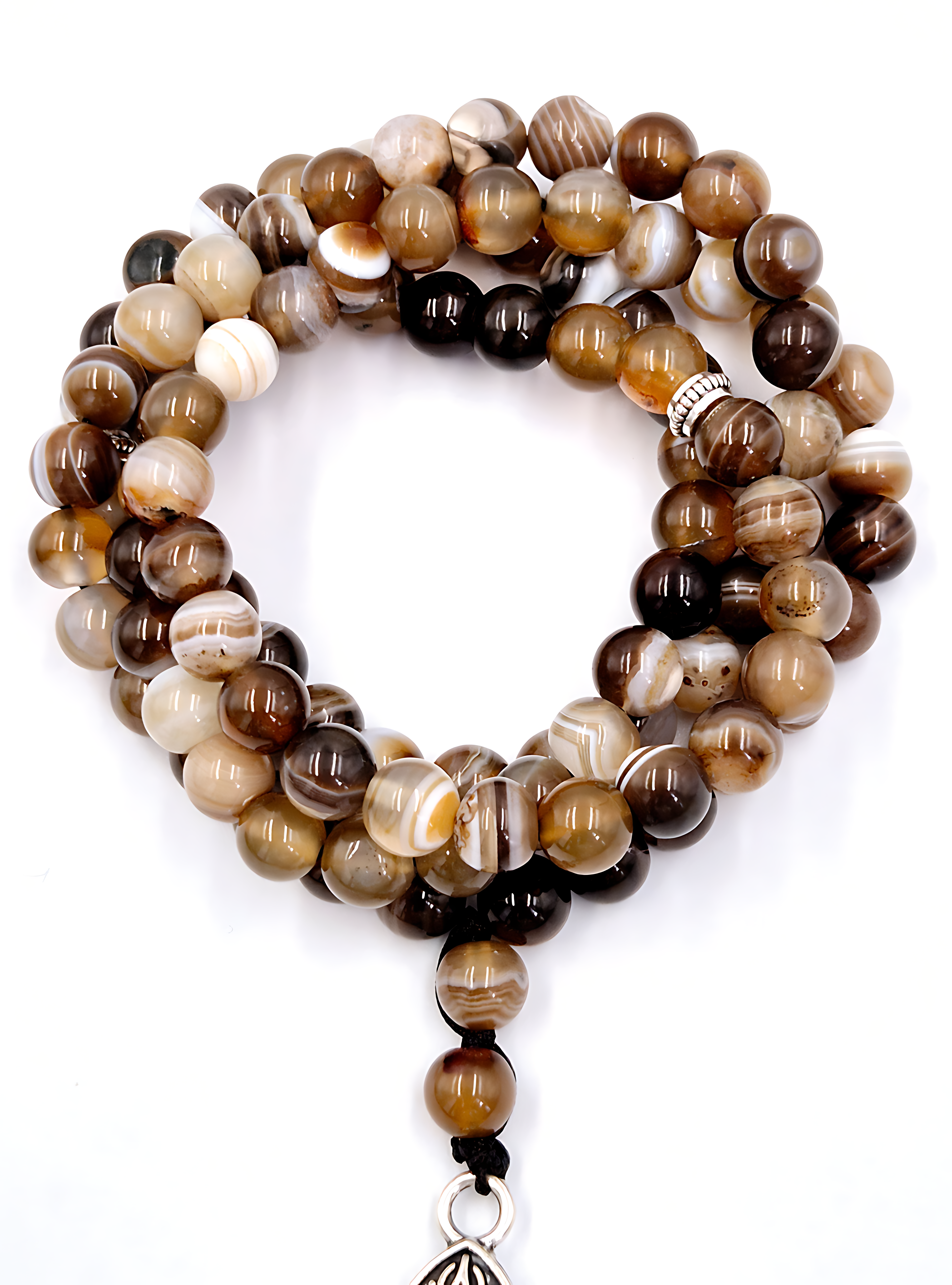 A tribute to the timeless landscapes of the desert, this prayer bead set features Brown, Beige, and White Suleimani Agate beads, mimicking the shifting sands and the soft glow of dawn. Brown Suleimani Agate, rich with earthy tones, carries the depth of ancient terrains. Beige Agate, smooth and subtle, echoes the warmth of desert dunes, while White Agate, with its milky translucence, represents the purity of the sky before sunrise. Together, these stones create a bead set that tells the story of endurance, wisdom, and the quiet beauty of nature’s vast landscapes.