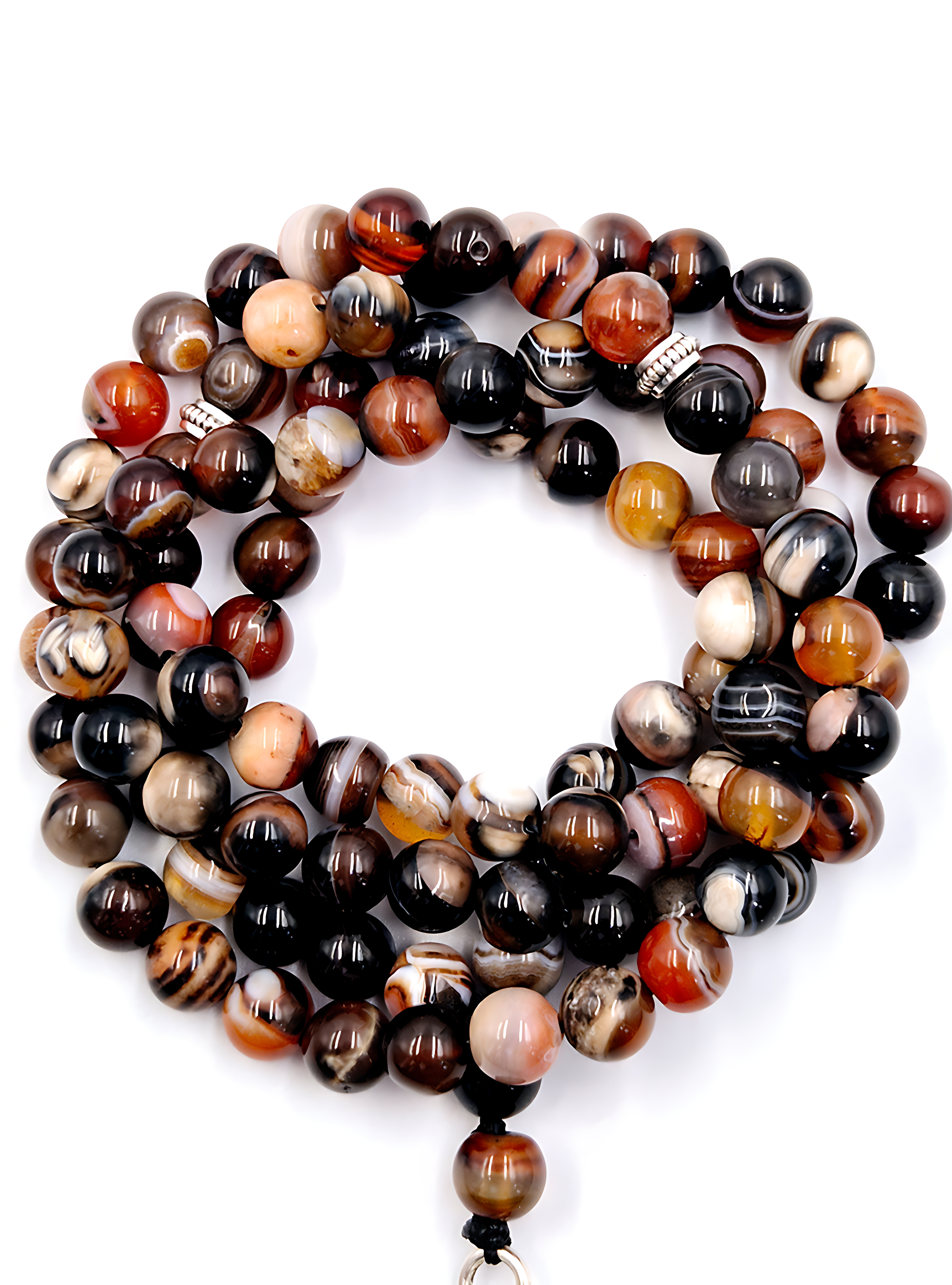 Like embers glowing in the darkness, this prayer bead set showcases vibrant Orange Suleimani Agate beads contrasted with deep Black Agate, creating a mesmerizing interplay of warmth and intensity. Orange Agate, known for its fiery tones, has been treasured in ancient markets for its striking beauty. Black Agate, bold and enigmatic, provides a grounding balance to the flame-like hues. Together, these stones create a bead set representing transformation, strength, and the flickering brilliance of history’s oldest elements.