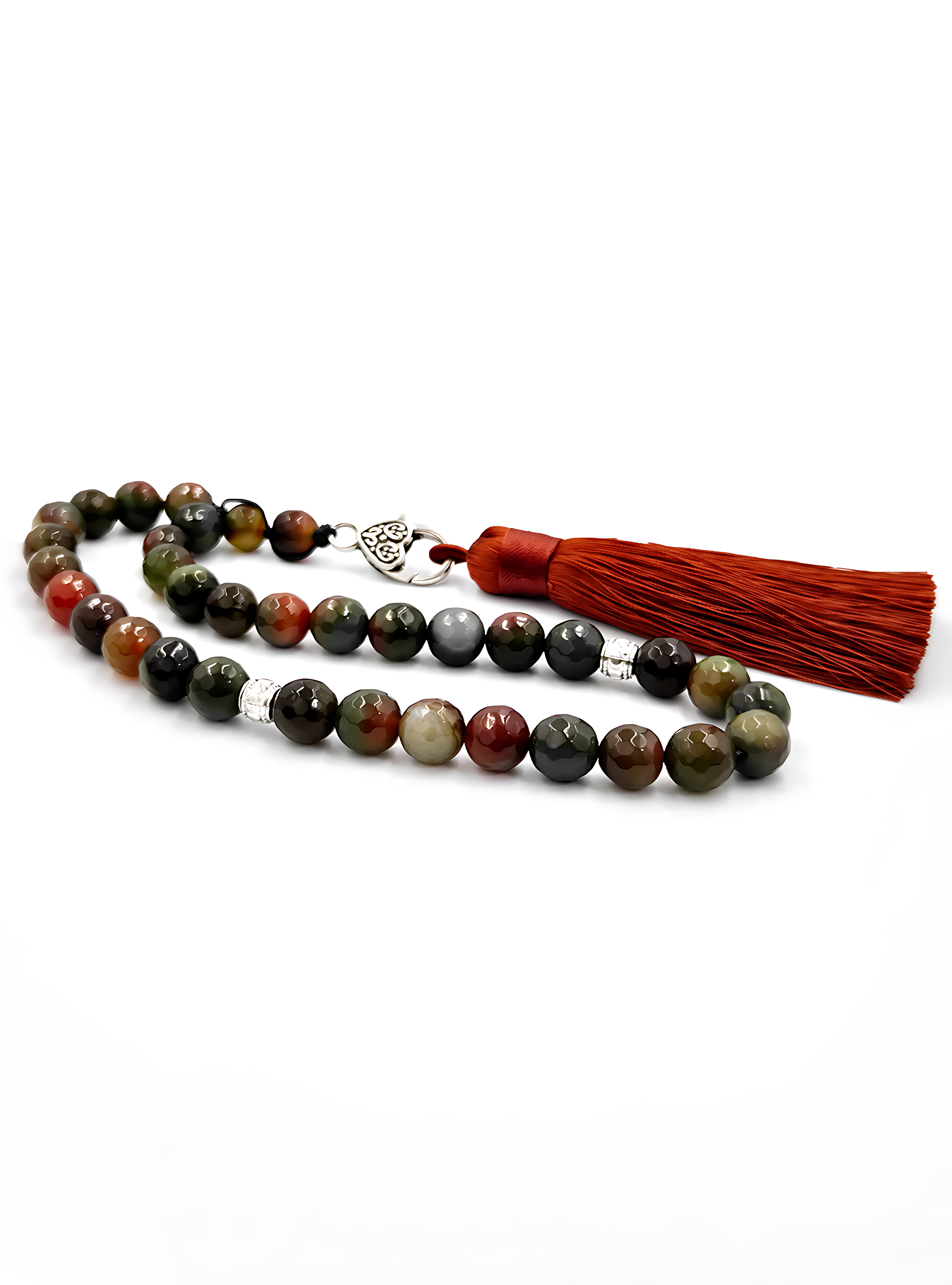 This prayer bead set reflects nature’s seasonal beauty. It blends Green and Orange Agate, symbolizing the lush vitality of spring and the golden hues of autumn. Green Agate, formed in mineral-rich earth, represents renewal and growth, while Orange Agate, radiant and warm, mirrors the richness of harvested fields. This unique combination creates a bead set that embodies balance, transformation, and the rhythm of life.