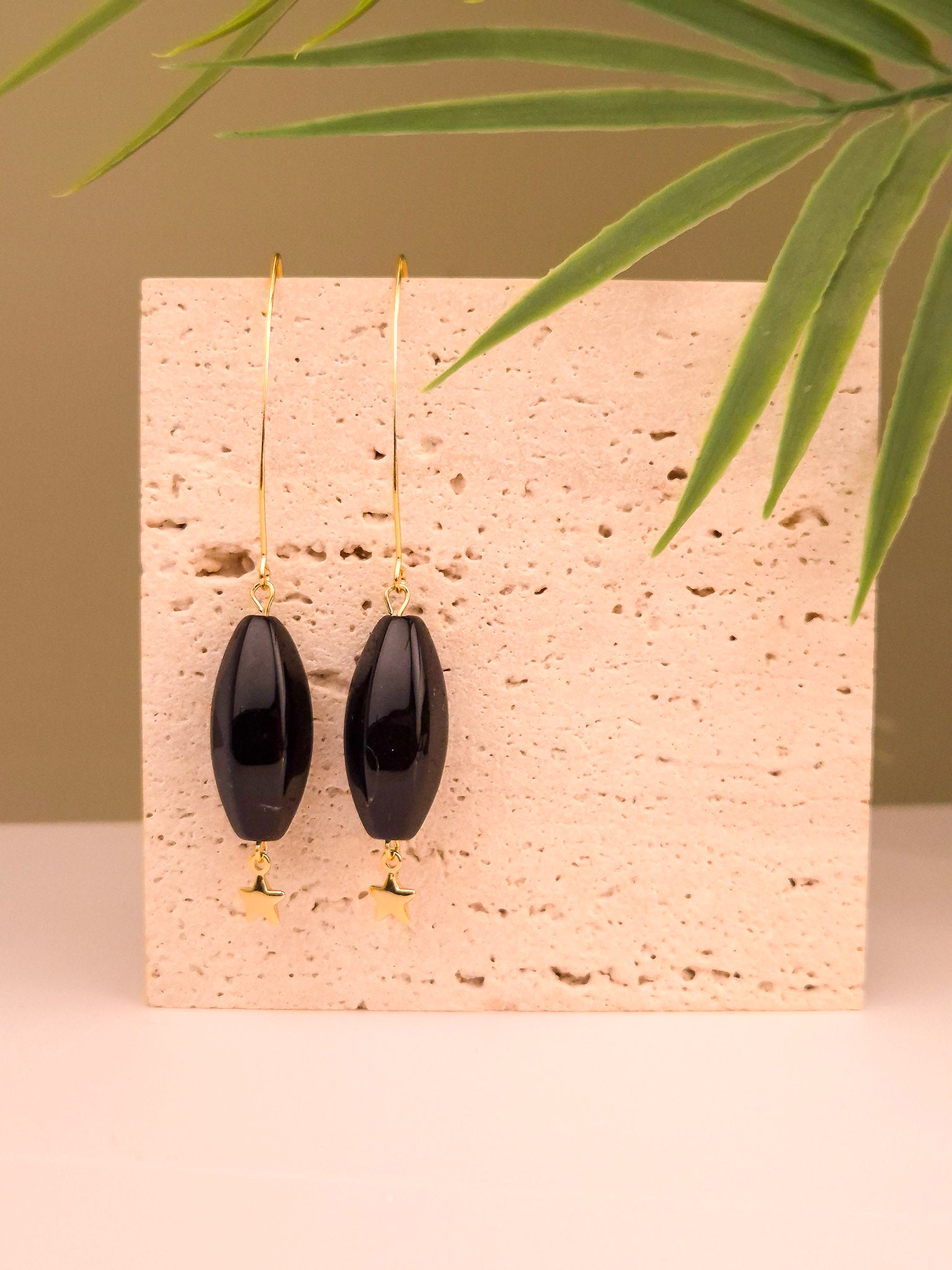 A sleek silhouette kissed by starlight. These elongated onyx earrings reflect depth, intuition, and the quiet magic of the night sky - grounded yet ethereal.