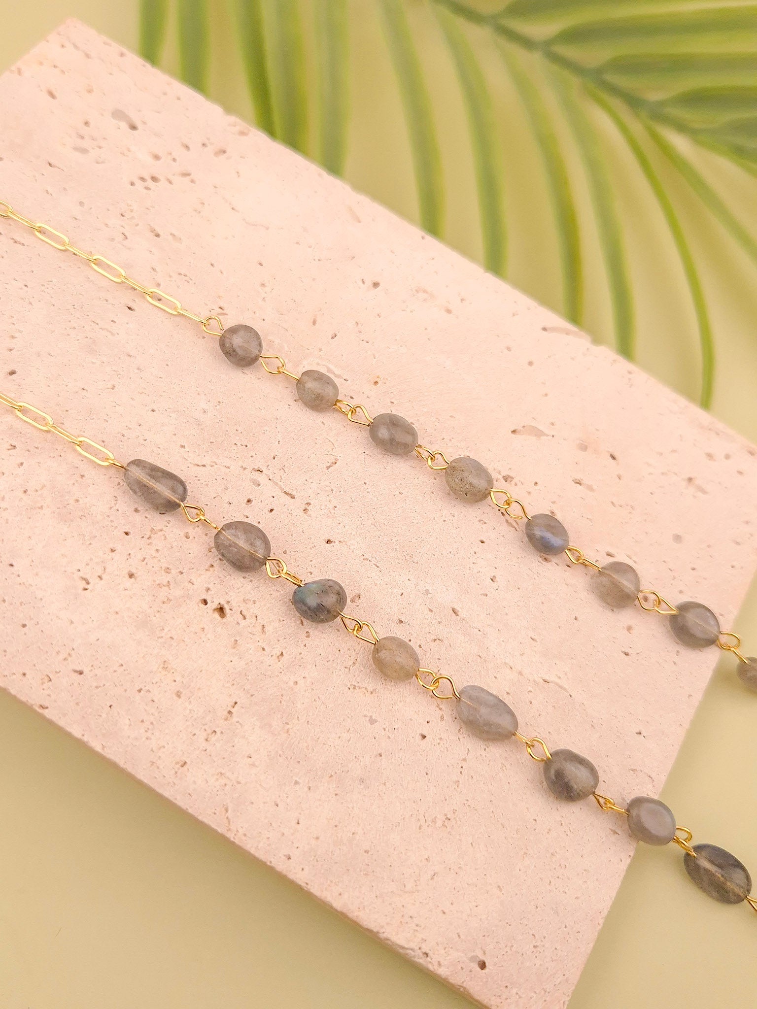 Length: Opera Length – Wire-wrapped beads with gold-plated chain |